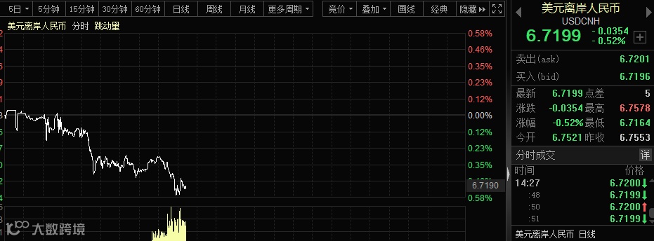 人民币表现亦非常给力,离岸人民币再度大涨超350点。