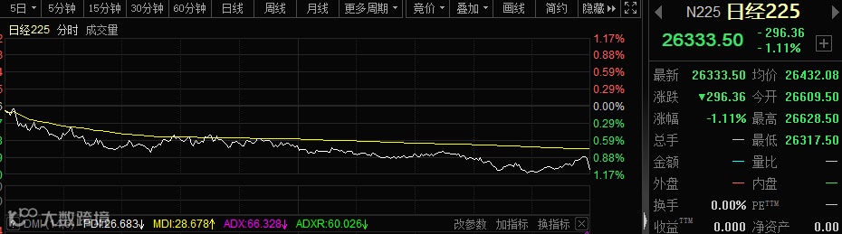 今天日本股市的表现亦弱于亚太市场,收盘杀跌超过1%。