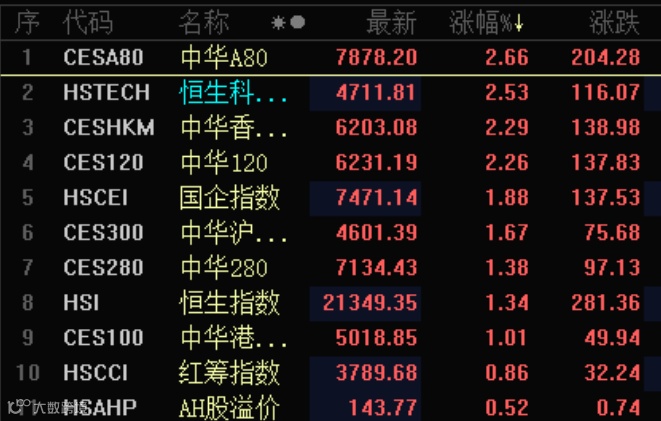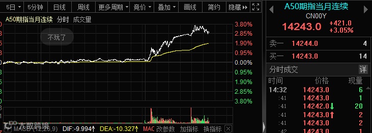 A50更是一度大涨超3%。
