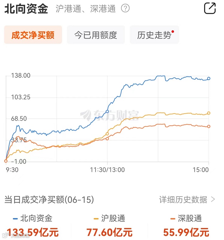 非常值得一提的是外资的表现。最近两个交易日,外资充当了反弹的超强驱动力。截至今天收盘,北向资金净流入133.59亿元,其中沪股通净买入77.6亿元,深股通净买入55.99亿元。也是近11个交易日第4次加仓超百亿。
