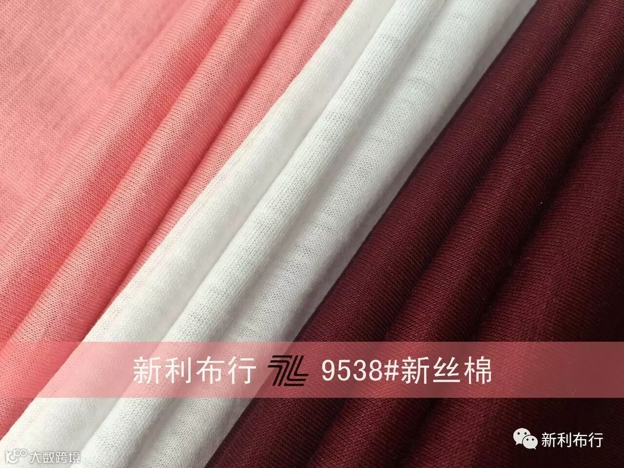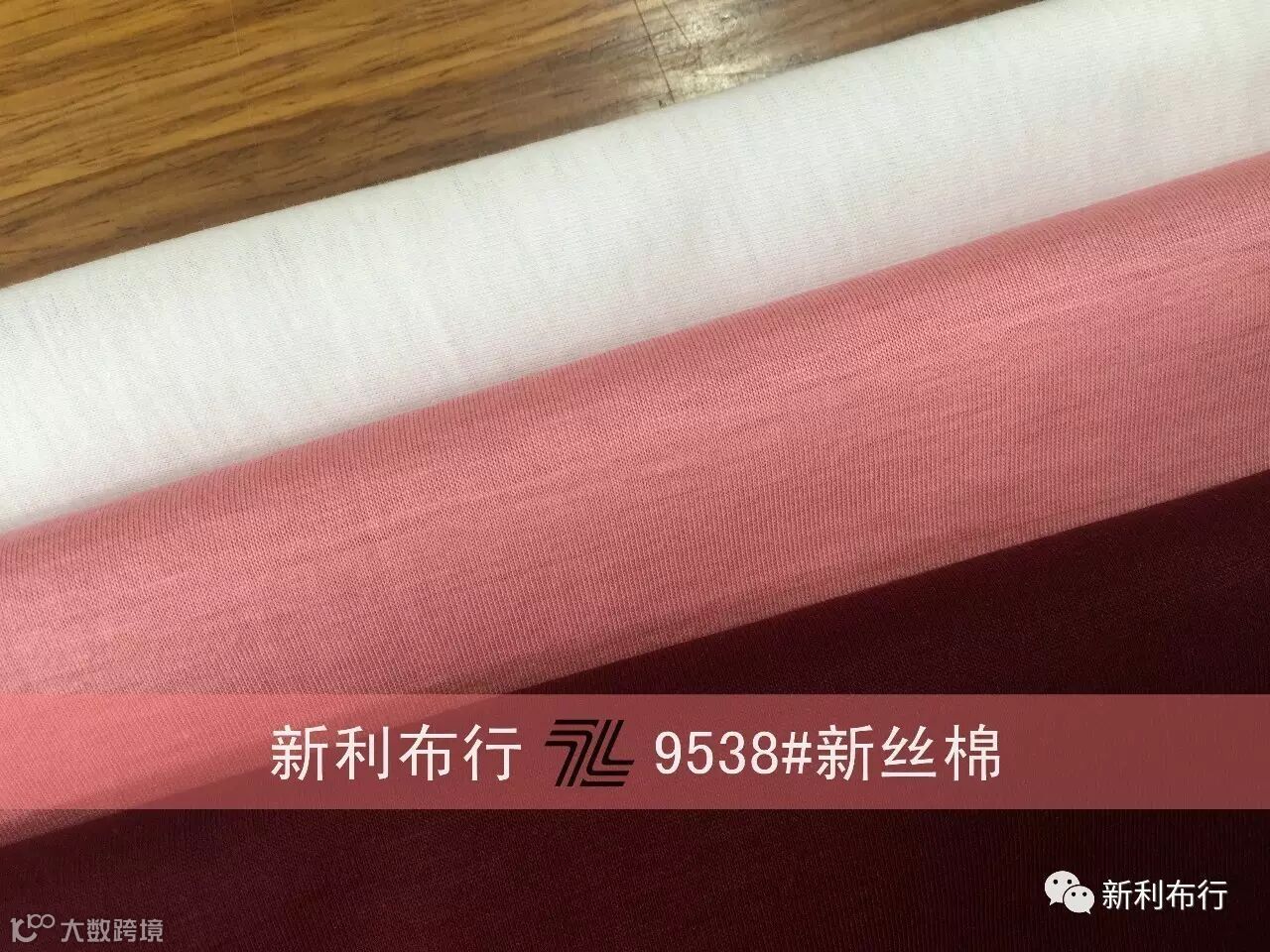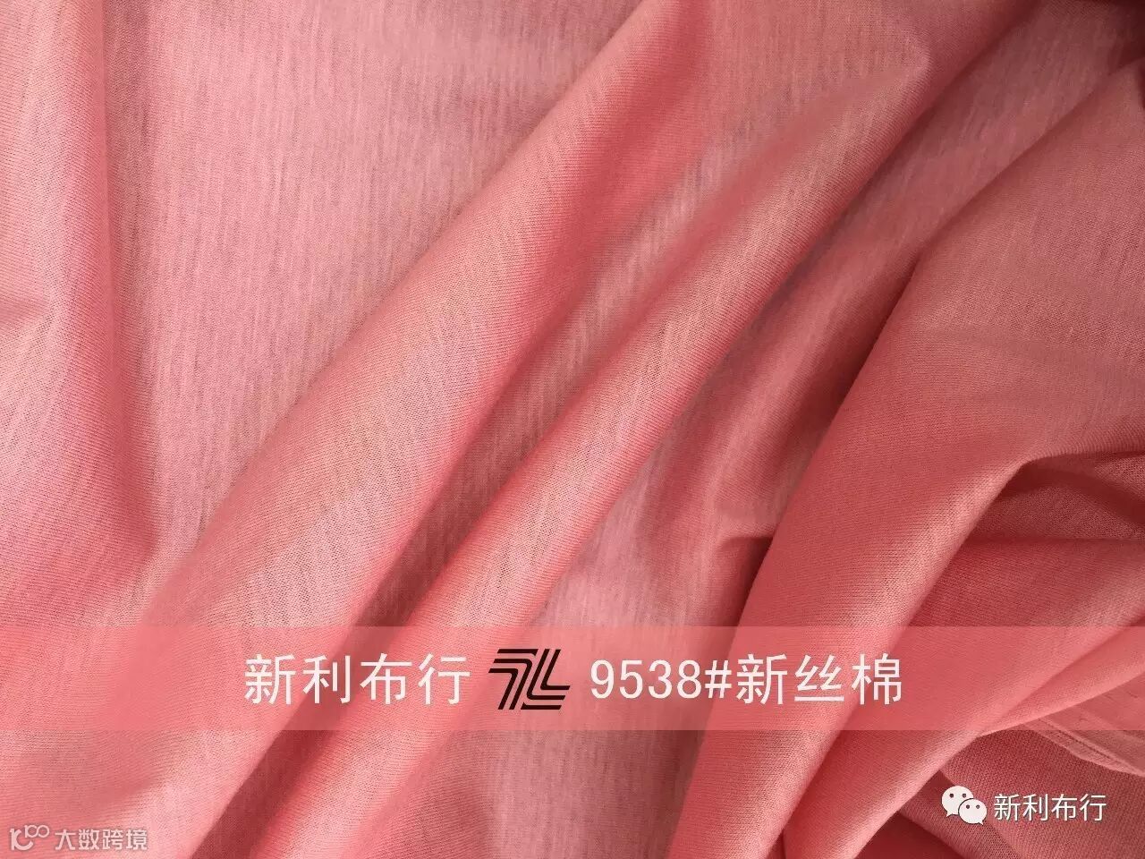 新利昊业9538#新丝棉是新研发产品,添加了天丝成份与丝光工艺的新丝棉,具有丝绸般的光泽,柔软的亲肤感,布料有悬垂性,做成的衣服更加贴身飘逸。这款布料的幅宽170cm,克重130g,具有吸汗透气、柔软、易清洗、不易起毛球等特性。