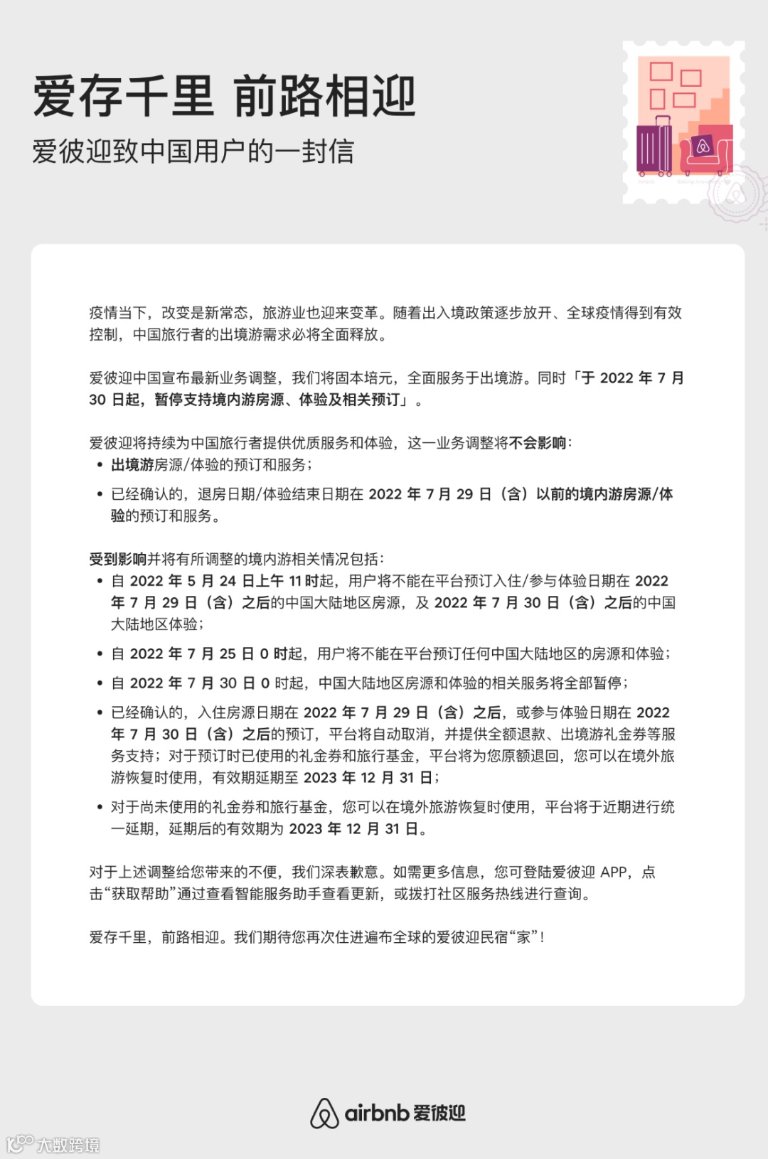 今天早上9:10,“爱彼迎官网”发布《爱彼迎致中国用户的一封信 》——