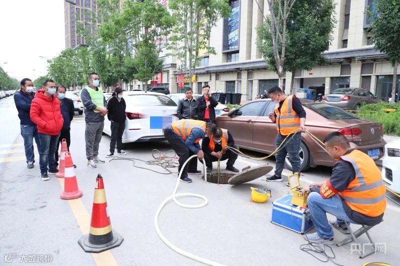 14日下午,男童部分家属跟随救援人员在事发地附近对下水道进行排查搜救(央广网记者 舒隆焕 摄)