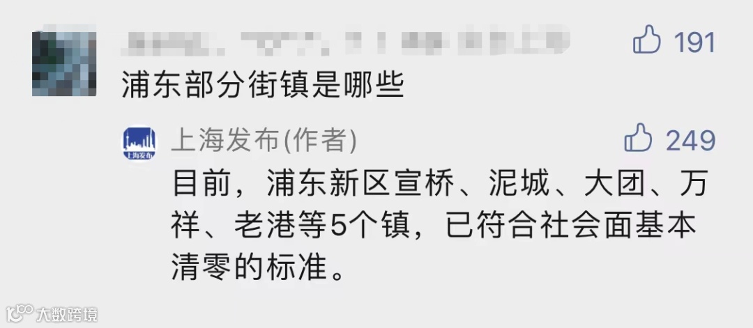上海发布:目前,浦东新区宣桥、泥城、大团、万祥、老港等5个镇,已符合社会面基本清零的标准。