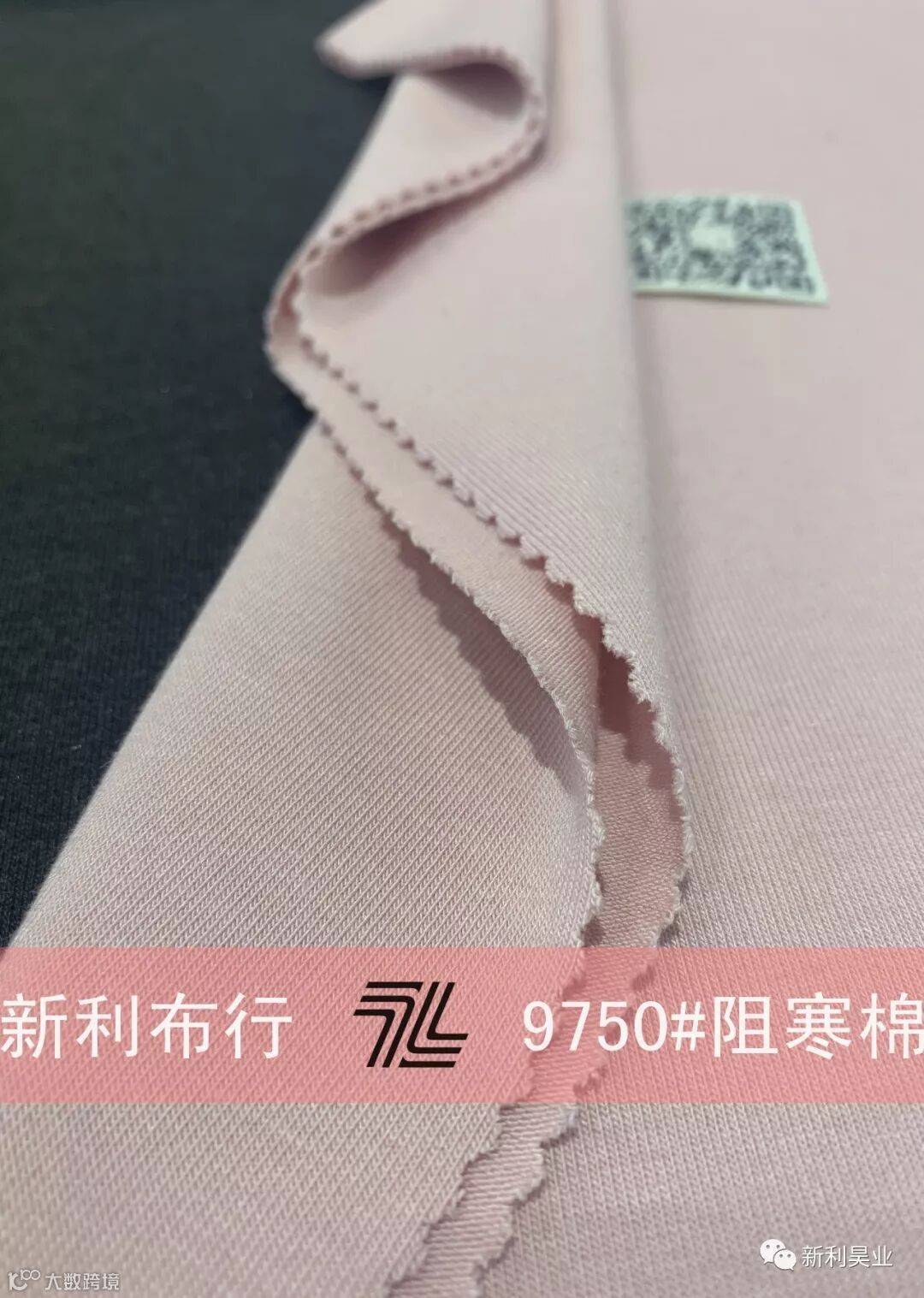 9750#阻寒棉是采用双纱织造的面料~手感柔软、舒适,幅宽175cm,克重260g,最重要的是!!一如其名,这款面料含有发热纤维,具有阻寒效果,保暖效果杠杠滴!!
