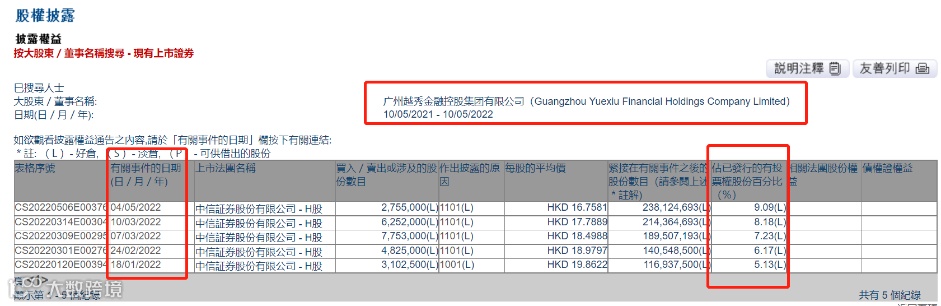 连续多次买入中信证券H股,越秀金控增持模式又开始了?