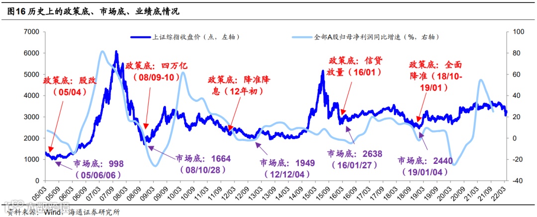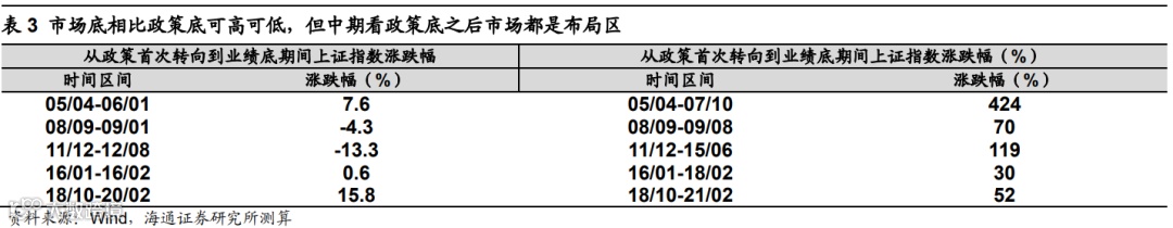 市场处在底部区域,是布局的时期。近期市场较弱,相较于3月16日的低点,万得全A和创业板指已经创下新低,沪深300接近前期低点,投资者开始担忧市场进一步下跌。我们在《历史复盘看政策底、市场底、业绩底-20220406》中指出,政策底到业绩底是复杂筑底过程,市场底并不一定高于或者低于政策底,但是着眼长期,如果从历史上政策底出现的时间开始布局,最终都会取得较好的收益,详见表3中我们的测算。这一次的政策底其实是去年12月,标志是中央经济工作会议定调全面稳增长,之后3月16日金稳会召开专题会议,强调“积极出台对市场有利的政策”,然后3月29日国常会明确指出,面对经济下行压力进一步加大要“坚定信心,咬定目标不放松,把稳增长放在更加突出的位置”。4月以来,政策仍在不断加码,货币政策上4月15日央行宣布全面降准25BP,4月18日央行与外管局提出加强金融服务、加大支持实体经济力度的23条政策举措,4月22日央行召开党委会,强调将“进一步加大对实体经济的支持力度,维护市场稳定,维护经济稳定”;财政政策方面,4月11日李克强总理在地方政府主要负责人座谈会上明确要求,专项债上半年要大头落地,形成更多实物工作量;地产政策上,宽松信号正密集出现,4月以来已经有衢州、苏州、南京、上海、淮北、南平等17个以上的城市松绑了购房政策,涉及限购、限贷、限售、公积金、房贷利率、购房补贴等内容;2022年以来,已有超过70个城市松绑了限购、限售等楼市政策,以满足合理住房需求。