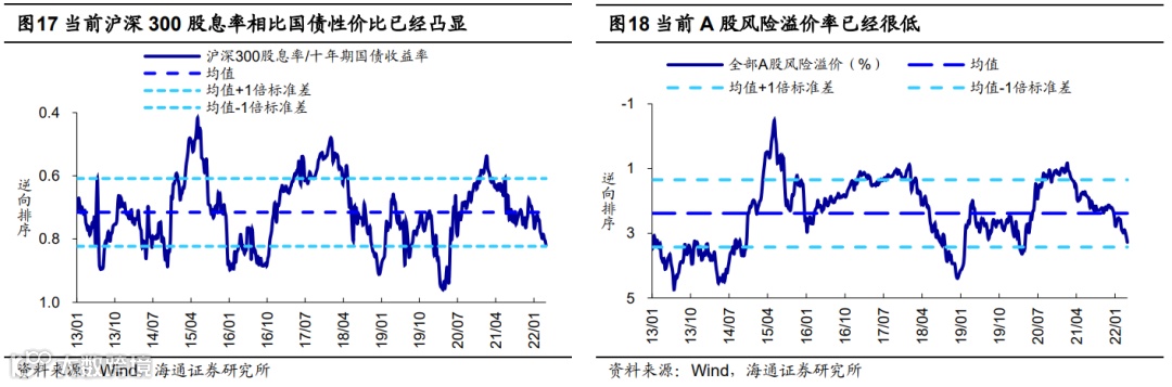 可见,这次政策底已经出现,业绩底需等待政策效果出现。市场目前担心疫情影响之下前期推出的政策力度还不够或者政策难以落地。我们认为,这需要密切关注接下来中央政治局会议的内容,参考20年4月的政治局会议,当时在会议上直接提及了赤字率、特别国债、降息降准、再贷款等事项。从估值的角度看,当前沪深300股息率/十年期国债以及全部A股的风险溢价(PE倒数与十年期国债的差值)均已触及1倍标准差的极值,显示当前股市的性价比已经很高。如果全年5.5%左右的GDP目标能实现,我们预计22年全部A股归母净利润同比增速5-8%左右,那未来市场会随着企业盈利的增加而逐步填坑,全年跌幅将会收窄。我们在《迷茫时,看远方-20220310》中分析过,当沪深300下跌20%后开始定投并持续2年的平均收益率为13%,股票型基金指数下跌20%后开始定投并持续2年的平均收益率达47%,借鉴历史数据,着眼未来,应该珍惜当前的布局期。