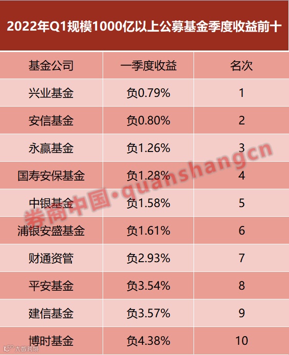 总体看,全市场市场上有 134 家基金公司一季度为负收益,仅 14 家公司产生正收益,这些一季度获得正收益的基金公司,绝大部分都是管理资金规模较少的中小公募。