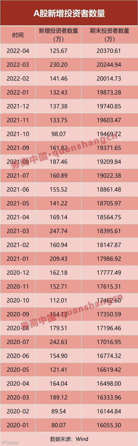 今年2月份,A股市场投资者数量正式突破2亿大关。截至4月底,A股投资者总数为2.04亿。