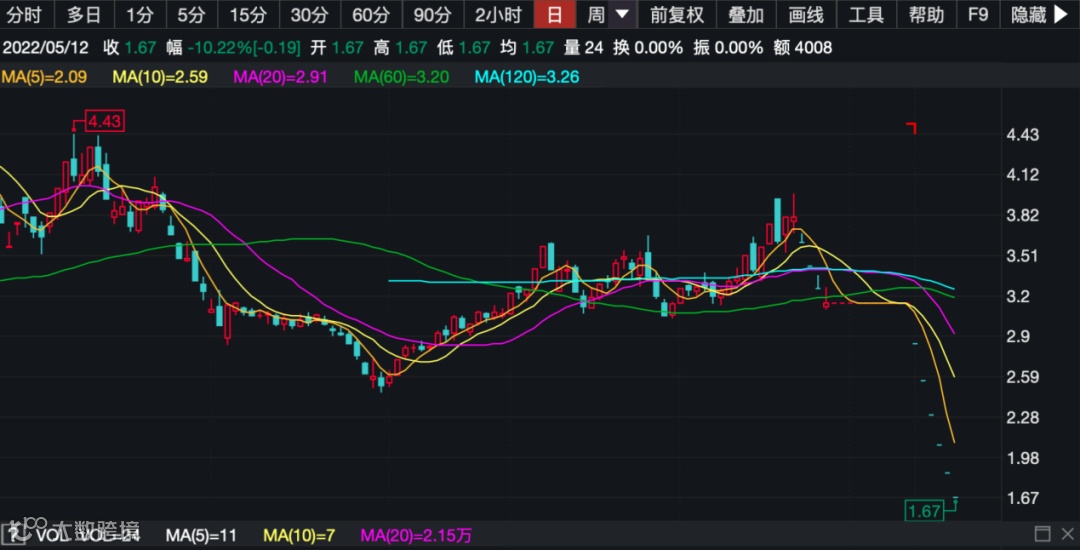 截至2022年5月12日收盘,德奥退报收于1.67元,下跌10.22%,已连续跌停6天。值得注意的是,德奥退当天成交额仅有0.4万元,龙虎榜上多个席位成交都处于百元级别。