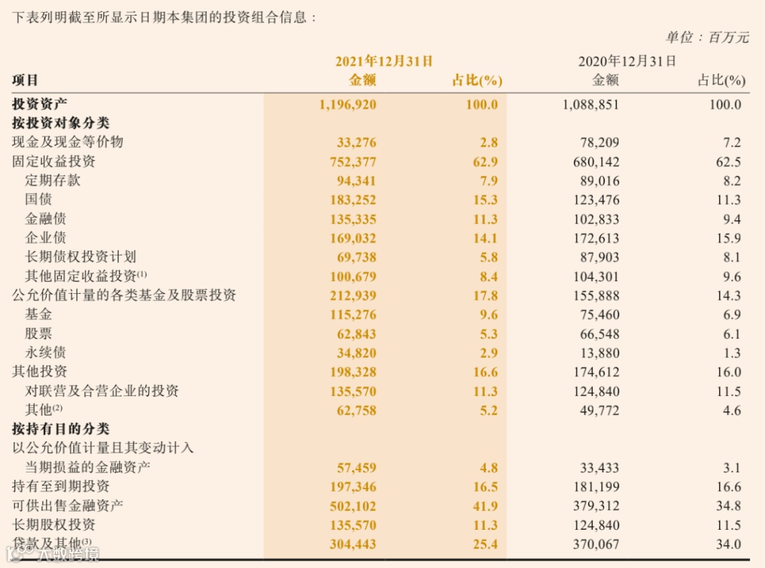 对于投资策略,人保在年报中称,2021年,面对低利率环境和权益市场震荡下行的不利影响,加强市场趋势研判,做好资产配置动态调整,构建战略与战术有效衔接的资产配置框架体系,积极防范投资风险。其中,债券投资抢抓长债配置时机拉长久期,不断缩小资产负债久期缺口;权益投资精选赛道,积极把握结构性投资机会,加强业绩对标和策略对标,同时积极开拓新的收益增长极,投资收益来源更为多元化。