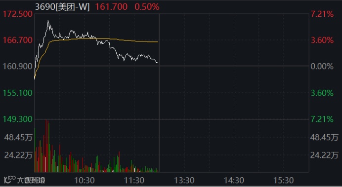 美团-W是恒生科技指数中唯一飘红个股,上午盘中一度涨约7%,后涨幅大幅收窄。