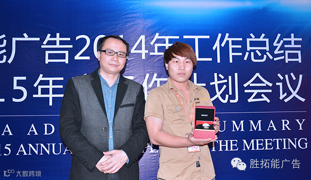 胜拓能广告有限公司总经理为“每月之星”、“年度优秀员工”颁奖