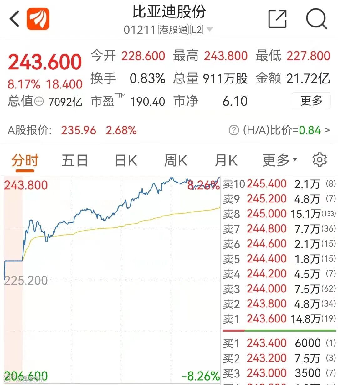 这份官宣发布后,瞬间在市场刷屏,比亚迪也成为了全球首个宣布停产燃油车的传统车企。在比亚迪官宣后的第2个交易日,比亚迪H股大涨超8%,总市值超过6400亿元人民币(包含A股市值)。其他新能源汽车股价亦集体大涨,理想汽车、小鹏汽车H股双双大涨超10%。美股市场上的新能源汽车股亦集体上涨。