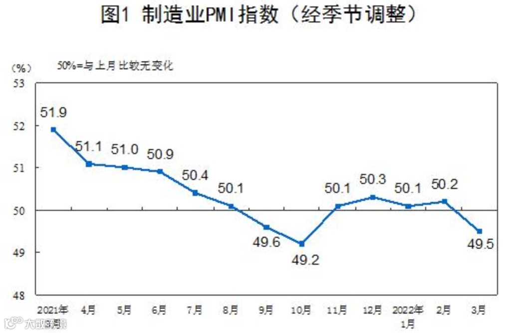 3月以来,国内多个省份暴发了疫情,陆续出台了严控疫情的措施,一定程度影响到了供需两端。3月中国统计局制造业PMI下降0.7至49.5,非制造业商务活动指数下降3.2至48.4,综合PMI产出指数下降2.4至48.8。