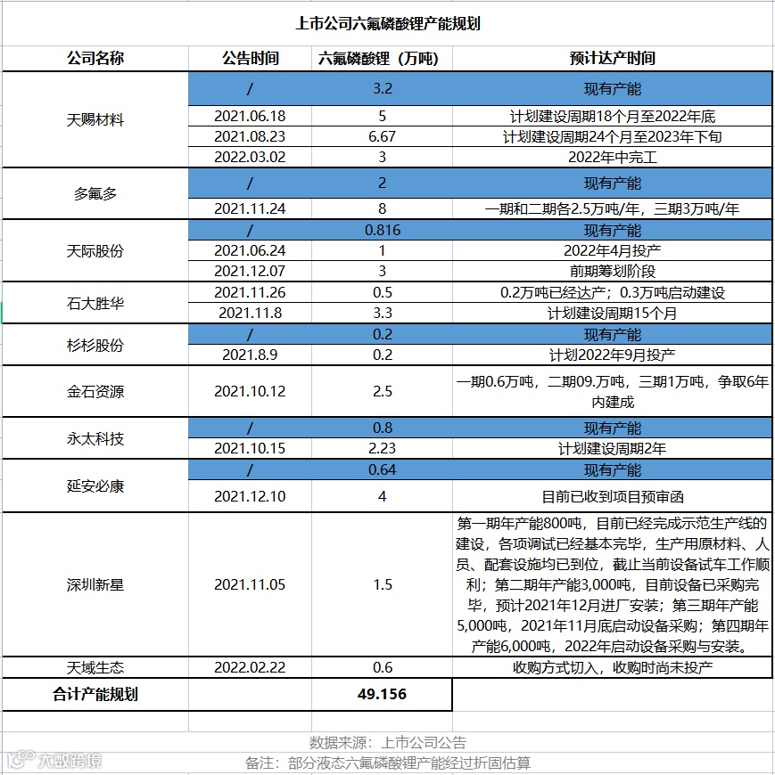六氟磷酸锂在去年价格飙涨引发业内频抛扩产计划,但产能过剩的风险已经比较明显。证券时报记者梳理出10家涉足六氟磷酸锂的上市公司,按照规划到2025年具备产能将超过50万吨。