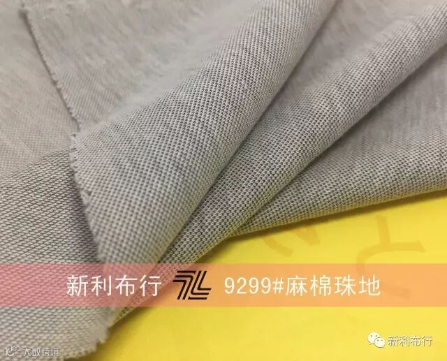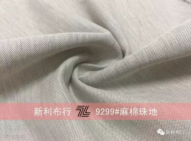 9299#麻棉珠地比一般的珠地面料更加轻、薄、透,面料除了具有一般珠地良好的透气性和透湿性的优点外,因为面料还有麻棉效果,所以接触皮肤的一面的透气性和散热性都极高,排汗的感觉舒适度好,即使在酷暑难当之日,它都能给予我们温柔的触感、舒适的享受。