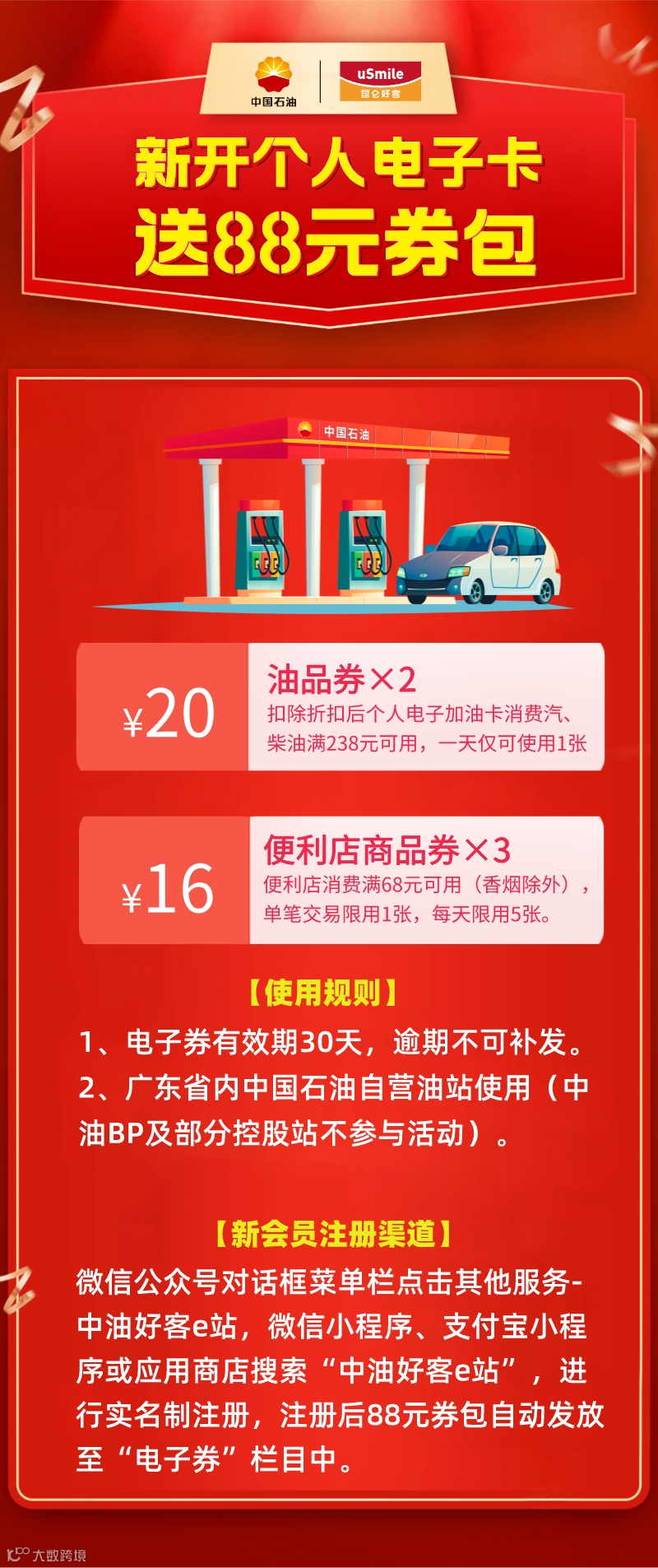 活动五 新开个人电子卡送88元电子券