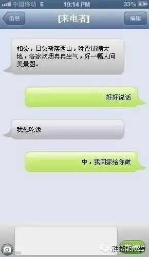 6、今天出门忘带手机了,回家拿手机,看到老婆气呼呼,不理我。我问她,她不说话指了指手机。我打开手机,看到上面有老婆发的短信。