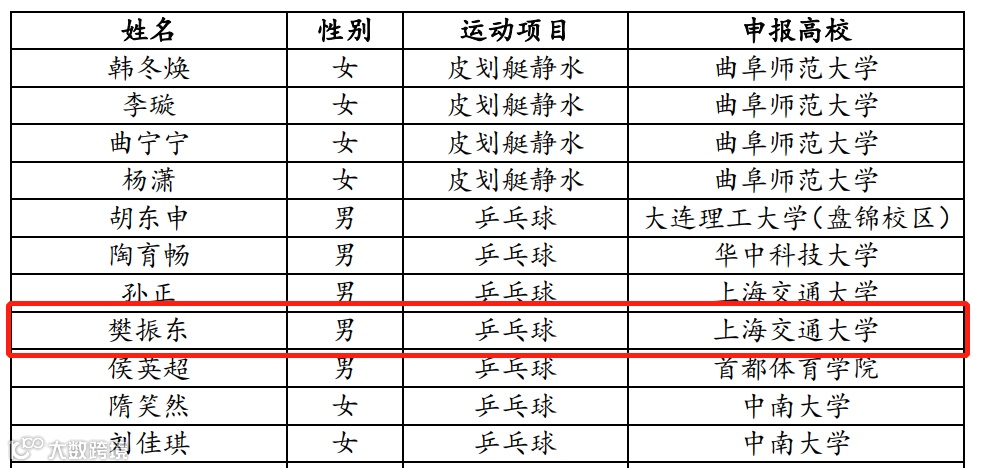 其中,中国乒乓球队运动员樊振东,拟被保送至上海交通大学。