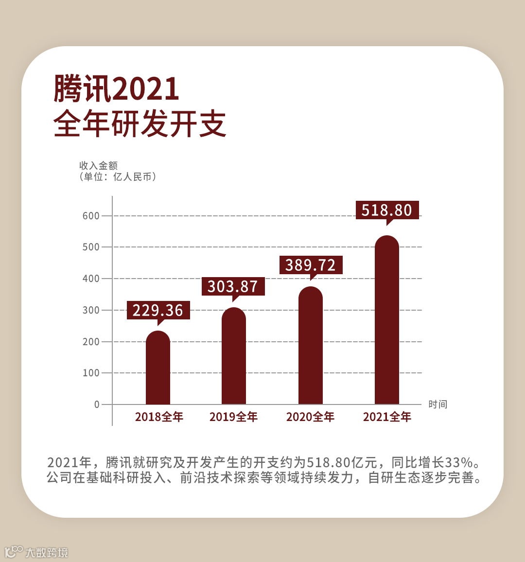 2021年腾讯全年营业收入首度突破5000亿元大关。