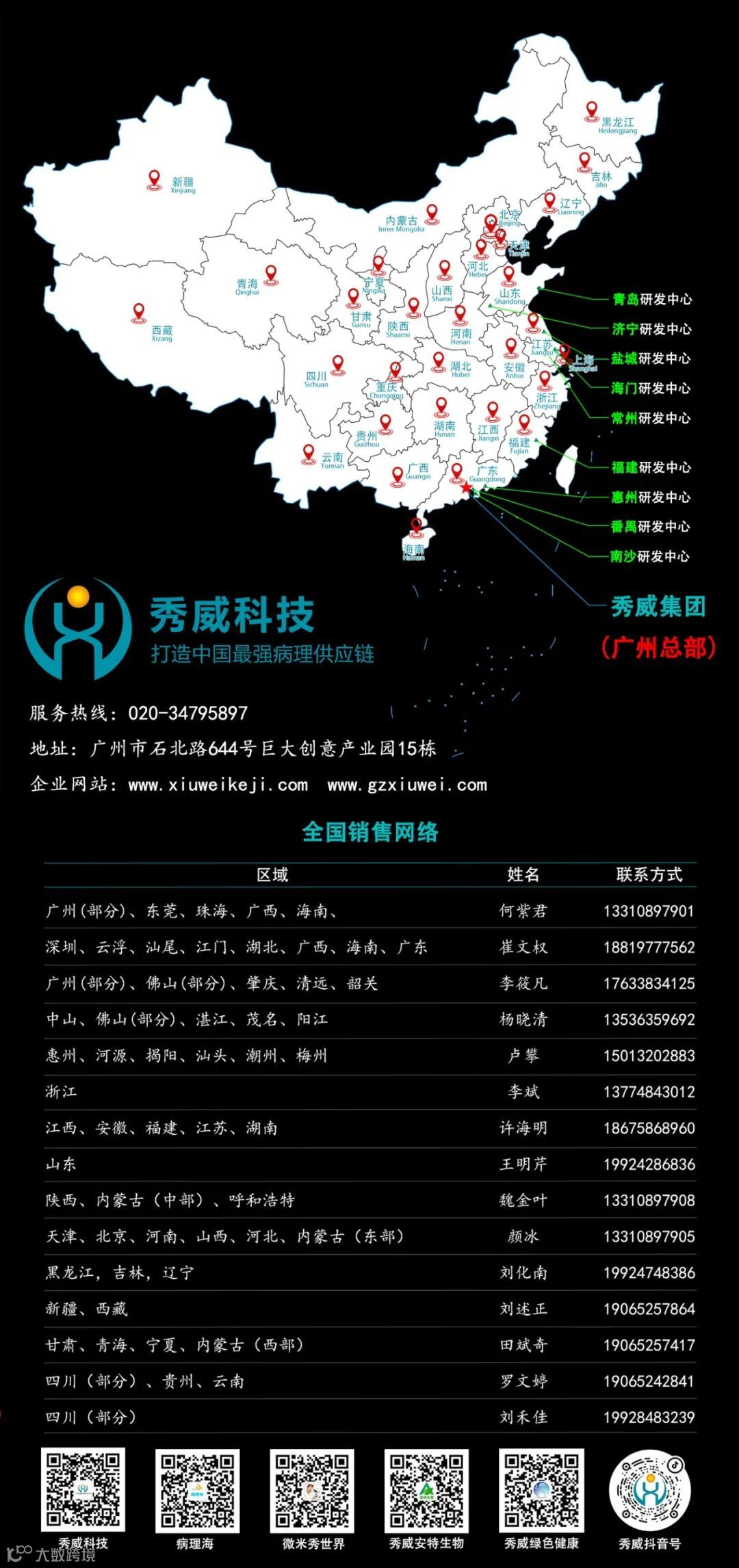 秀威科技集团的销售网络遍布全国,集团的销售团队以专业的服务和高效的工作方式,致力于将高质量的病理设备和解决方案推向市场。