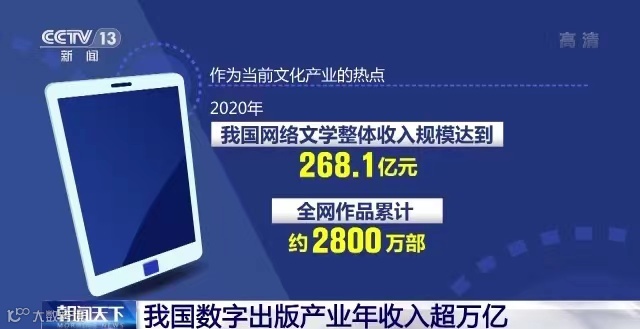 近期发布的《2020-2021中国数字出版产业年度报告》显示,到2020年,我国数字出版产业整体收入达到11781.67亿元,比十年前增长了11倍,数字化阅读质量逐步提升。 近几年,各出版社纷纷稳步推动数字内容的价值变现,国家每年出版的20多万种图书和近万种期刊,基本上全部实现了数字化加工。2020年,我国互联网期刊、电子图书、数字报纸的总收入为94.03亿元,比上一年增长了5.56%,移动阅读等实现收入2448.36亿元。 而作为当前文化产业的热点,2020年我国网络文学整体收入规模达到268.1亿元,全网作品累计约2800万部。 截至2020年底,我国网络文学作品出口超过1万部。网络动漫、网络游戏、在线教育、互联网广告以及数字音乐等也带动了中国数字出版产业的整体提升。 中国新闻出版研究院数字出版研究所所长 王飚:目前我国的数字阅读用户规模超过5个亿,无论是从用户规模还是从产品或者从内容质量方面,我们认为在全世界也都是居于前列。 来源:央视新闻客户端