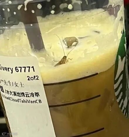 此前,据媒体报道,近日,有用户发文并晒图表示,在星巴克饮品中喝出活蟑螂。发出的图片显示一只活蟑螂在杯中摇动着触角。事件引起网友热议。