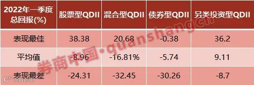 混合型QDII中,仅上投摩根全球天然资源一只基金以高达20.68%的总回报脱颖而出,其他基金收益告负,排名垫底的是华南某公募的一只全球医药QDII基金,单季度累计跌幅超32%。数据显示,混合型QDII基金的一季度平均跌幅高达16.81%。