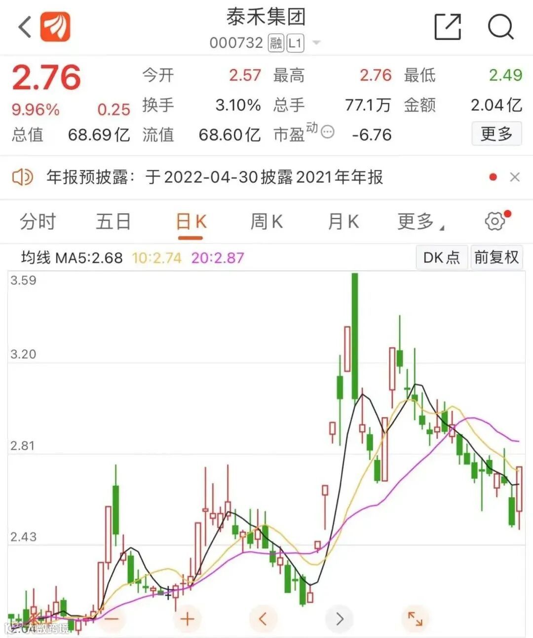 今年1月28日晚间,也就是牛年最后一个交易日的晚上,泰禾集团发布业绩预告,预计公司2021年净利润约为1.01-1.32亿元,而上年同期亏损近50亿元。随后,泰禾集团股价迎来了一波不错的行情,2月7日至2月11日,公司在5个交易日中收获4个涨停板,期间涨幅超过51%。