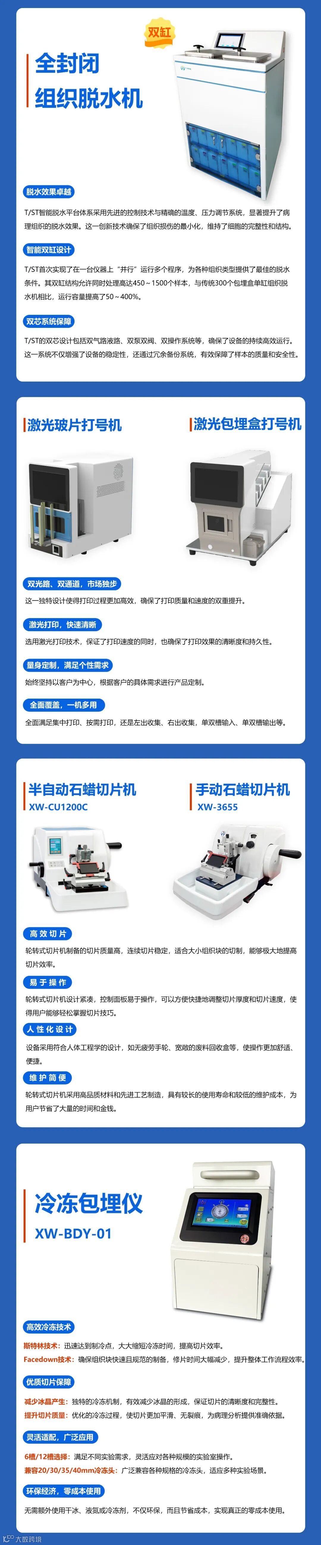 秀威集团通过学习、借鉴国内外知名病理企业产品和技术特色、特点,创新性地研发和生产推出了拥有病理常规全系列解决方案的仪器、耗材、试剂、免疫组化染色机、免疫组化试剂等产品和技术。
