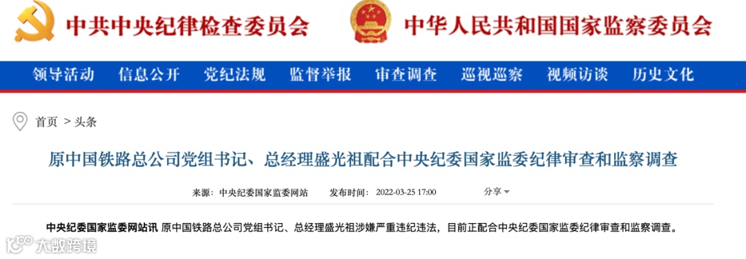 2016年10月,时年67岁的盛光祖从中国铁路总公司退休。此次他因涉嫌严重违纪违法而配合调查,成为今年以来第15名落马的中管干部。