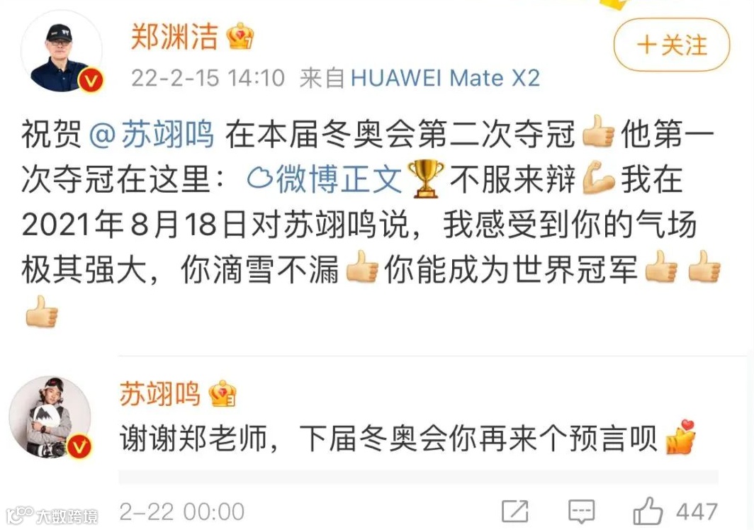#苏翊鸣深夜回复众人微博#