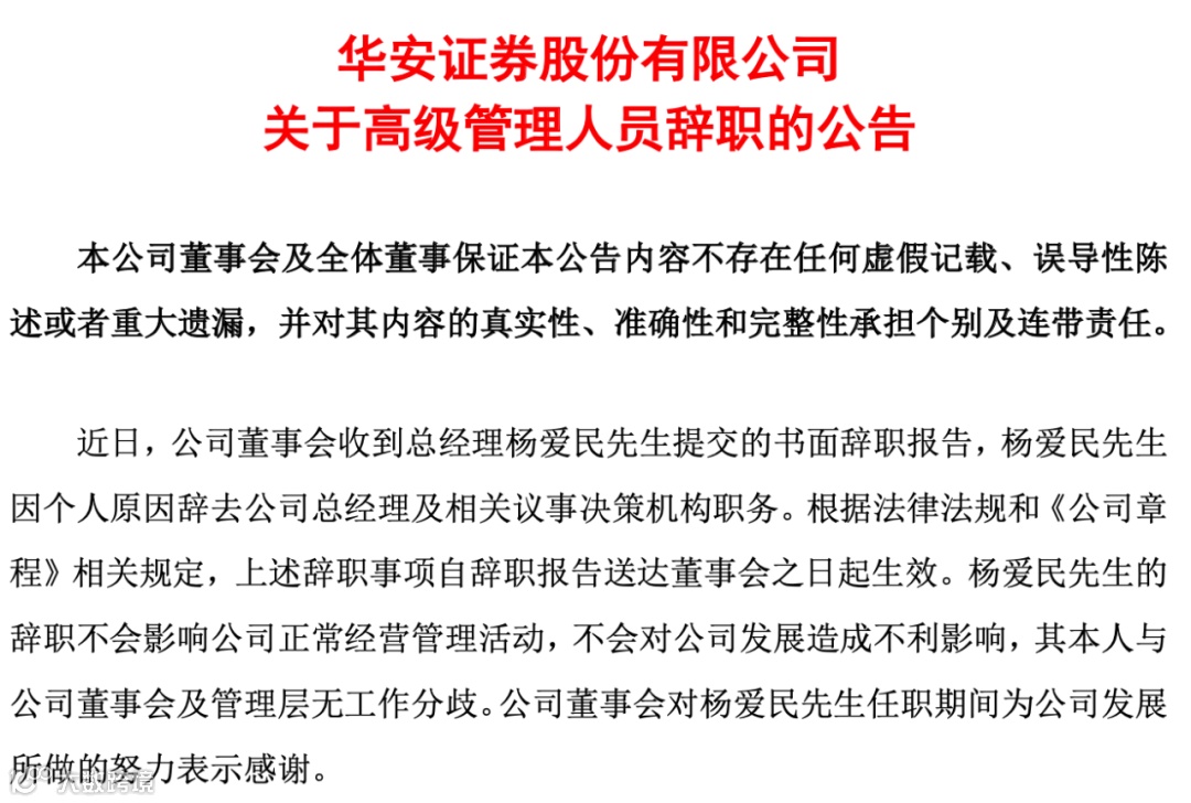 2021年财报发布次日,华安证券总经理杨爱民宣布辞职。