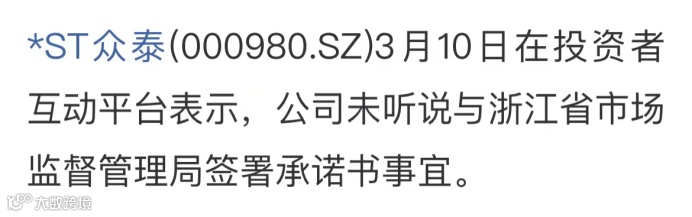 对此,*ST众泰(000980)也在投资者互动平台回应称,公司未听说该事宜。