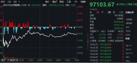 可能正是因为这个建议,昨天表现较强的白酒板块,今天就出现了走势较为疲软,白酒指数早盘一度杀跌超过1.5%。