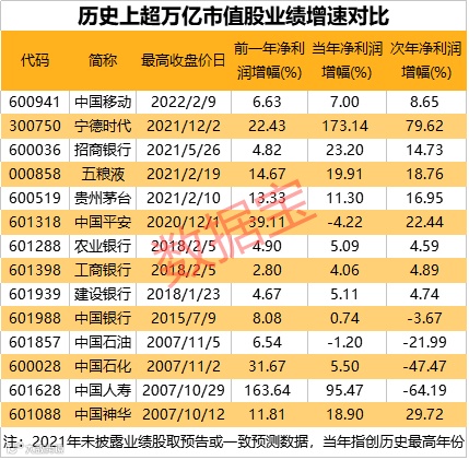 以史为鉴,数据宝统计,A股历史上共有14股的市值突破万亿,2007年有4只“中”字头股市值站上万亿元,包括中国石油、中国人寿、中国石化等,其中中国石油市值最高超过7万亿,迄今为止尚未有公司市值能超过它。贵州茅台、工商银行、中国石化等3股市值巅峰期均超过2万亿,如今仅剩贵州茅台市值超2万亿元。