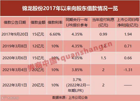 公告披露,在2022年1月29日,锦龙股份表示,拟向控股股东东莞市新世纪科教拓展有限公司(简称“新世纪公司”)借款总额不超过20亿元,期限一年,借款年利率不超过10%。