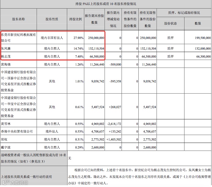 2021年报显示,锦龙股份前三大股东分别为新世纪公司、朱凤廉、杨志茂,分别持股27.9%、14.74%和7.4%,三者为一致行动人关系,新世纪公司实际控制人为杨志茂,同时,朱凤廉为杨志茂的配偶。