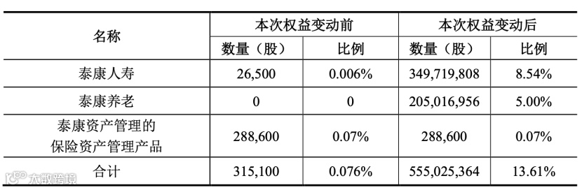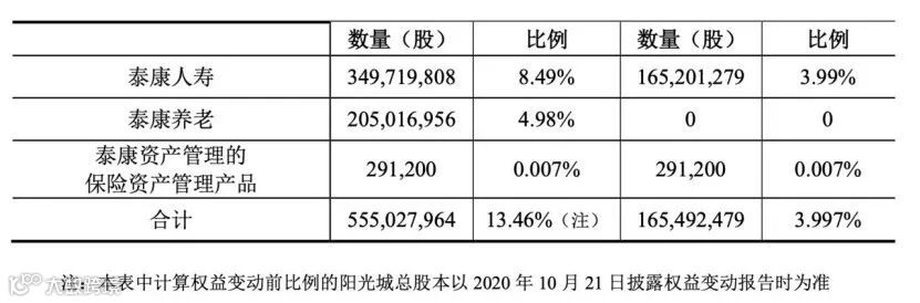 (2020年9月泰康入股阳光城前后持股变化)