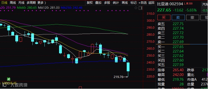 另一方面,比亚迪、隆基股份等股票盘中则大跌,其中比亚迪盘中大跌超过8%。