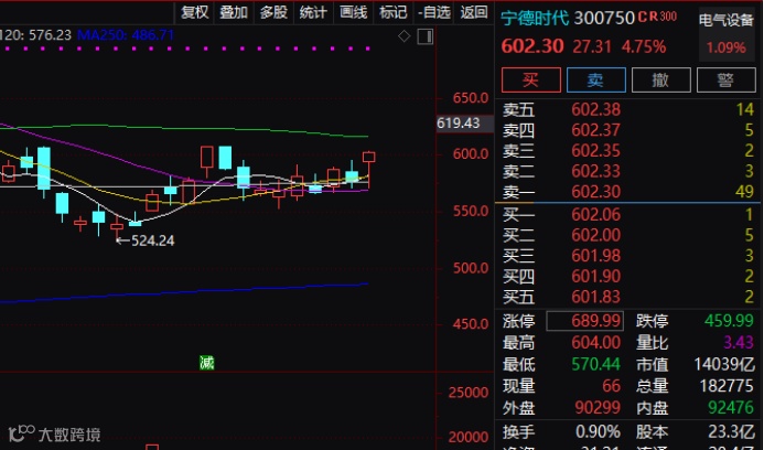 一方面,宁德时代、阳光电源等龙头股票盘中大涨,其中宁德时代盘中一度大涨超过5%,重新站上600元大关,市值激增700亿至1.4万亿。也带动了创业板指走出V型走势。