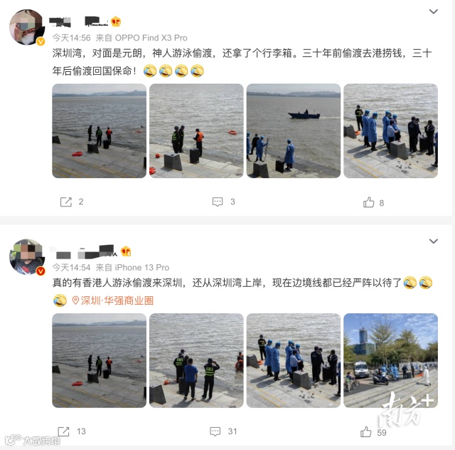深圳湾公园管理处相关人士表示,不是偷渡过来的,该男子是轻生被救。