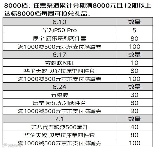 活动期间,持卡人通过任意渠道办理指定分期业务,分期金额累计满3000元/8000元且12期及以上的分期(含账单分期/灵活分期),即可获得领礼品资格。具体达标及领礼品时间如下: