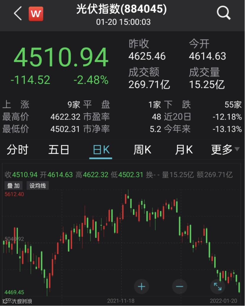 1月20日,光伏、风电板块再度遭遇大跌,光伏指数大跌2.48%,风电指数跌0.62%。自去年12月以来,A股的光伏指数、风电指数便开始走弱,累计跌幅分别达19.8%、20%。