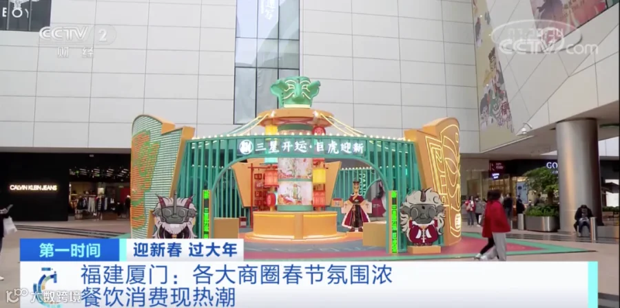 春节假期,江苏不少大型商贸综合体都安排了丰富活动,烘托浓浓年味。在宿迁、苏州等地的商场里,黄金珠宝专柜前不少顾客正在挑选,除了传统金饰外,虎年生肖金成为热销款,为了吸引顾客进店购买,各类首饰优惠力度都比较大。