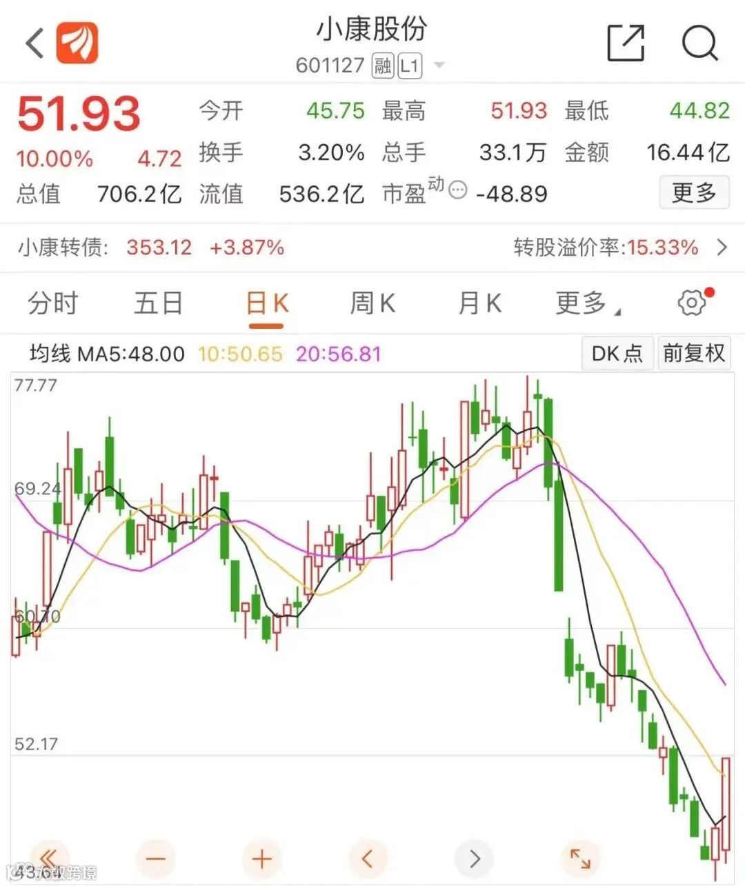 风口浪尖之上的小康股份(601127)1月18日开盘下跌,但随后强势反弹涨停。