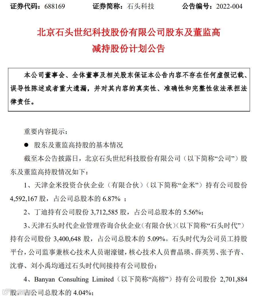 据Wind数据统计,虽然披露了多次减持计划,但也有部分股东在计划期间并没有采取减持措施,因此截至发稿石头科技股东仅完成合计不超过14.95%的股份的减持计划。