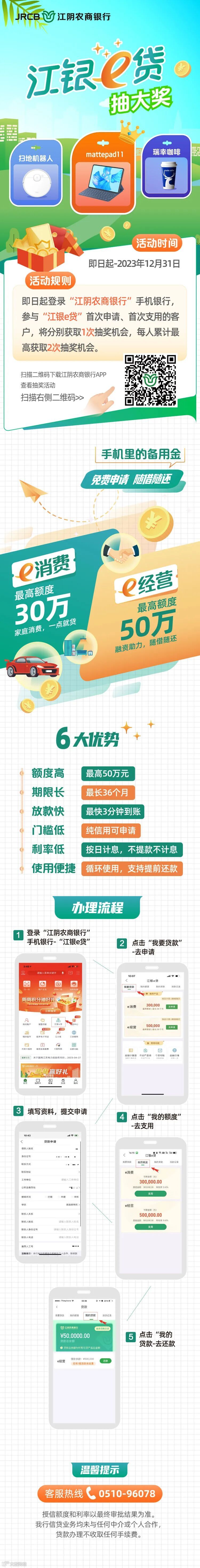 江阴农商银行坚持服务中小企业市场定位,秉承"离您 最近,和你最亲"的服务理念,秉承"融通天下,丰裕万家"的企业使命,正向着创建品质精益的公众持股银行的目标大步迈进。